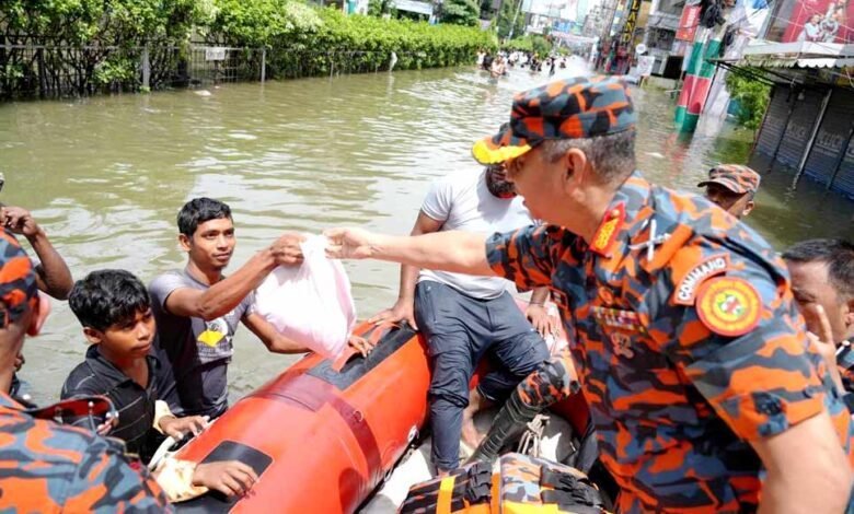 মহাপরিচালক ব্রিগেডিয়ার জেনারেল মো. মাইন উদ্দিন বন্যাদুর্গত এলাকা পরিদর্শন ও সবশেষ পরিস্থিতি পর্যবেক্ষণকালীন ফায়ার সার্ভিস ও সিভিল ডিফেন্স-এর কর্মকর্তা ও কর্মচারীদের উদ্ধার কাজের নির্দেশনা প্রদান করেন।