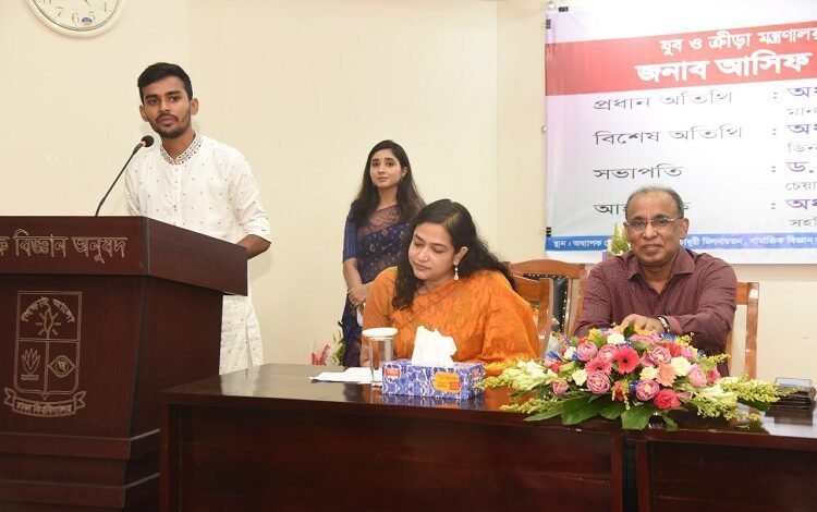 গণপ্রজাতন্ত্রী বাংলাদেশ সরকারের যুব ও ক্রীড়া মন্ত্রণালয় এবং শ্রম ও কর্মসংস্থান মন্ত্রণালয়ের দায়িত্বপ্রাপ্ত উপদেষ্টা জনাব আসিফ মাহমুদ সজীব ভূঁইয়া বলেছেন, বিশ্ববিদ্যালয়ের শিক্ষক-শিক্ষার্থীদের জ্ঞান এবং প্রজ্ঞাকে দেশ পুনর্গঠনের পলিসি লেভেলে কাজে লাগাতে হবে। দেশ পুনর্গঠনে সংস্কার কার্য চলমান থাকবে।
