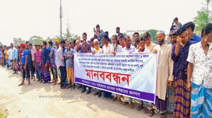 মানববন্ধনে বক্তব্য রাখেন, স্থানীয় ব্যবসায়ী আব্দুল মন্নান রানা, কলেজ ছাত্র মো.আতিক, মো.জামসেদ ও নুরুল আমিন প্রমূখ।