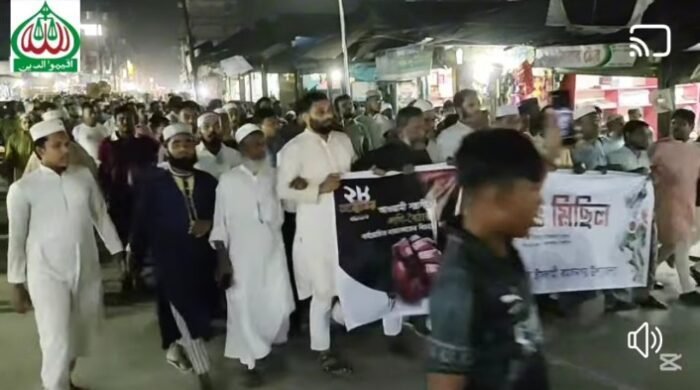 কমলনগরে জামায়াতে ইসলামীর বিক্ষোভ মিছিল।