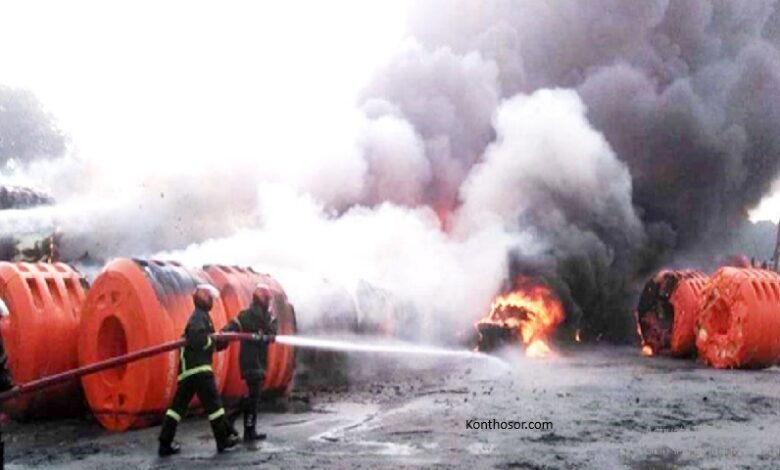 আরিচায় বিআইডব্লিউটিএর ড্রেজার পাইপে আগুন