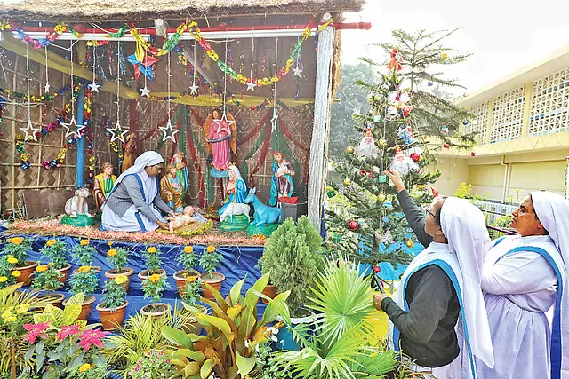 কাকরাইলের সেন্ট মেরি’স ক্যাথেড্রাল চার্চেও দেখা গেল, সিস্টাররা গোশালা সাজাতে ব্যস্ত। অন্যদিকে প্রার্থনা ঘরে ফুল, বেলুন দিয়ে সাজিয়ে প্রস্তুত করা হচ্ছে।