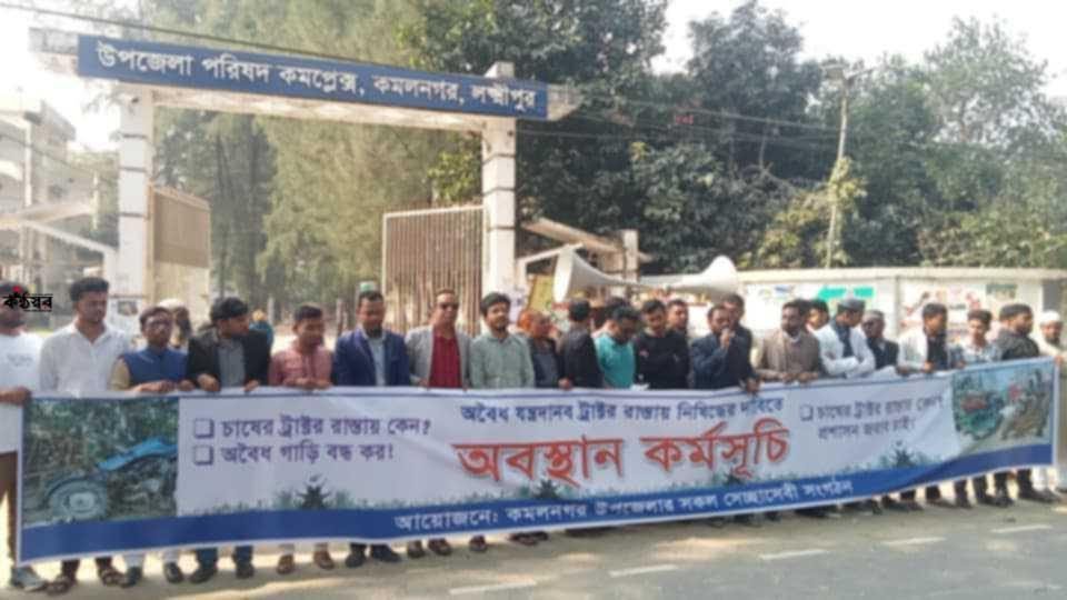 অবৈধ ট্রাক্টরট্রলি বন্ধে কমলনগরে অবস্থান কর্মসূচি পালন