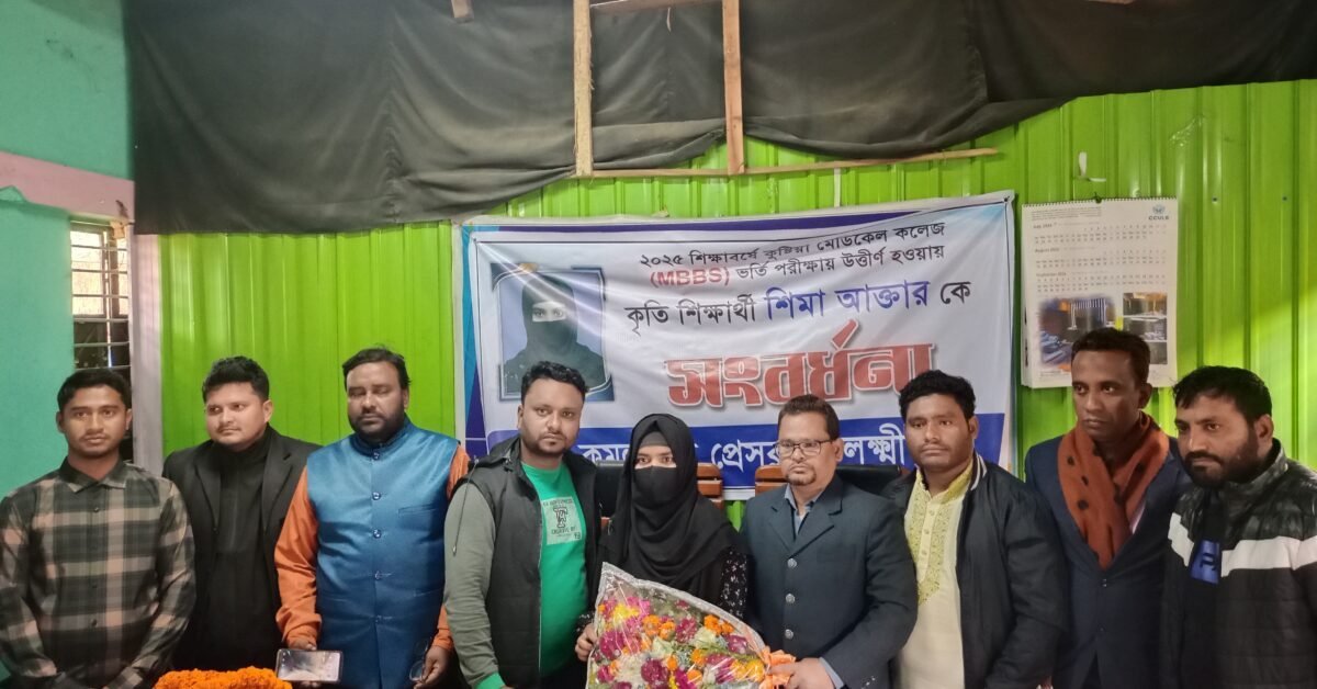 মেডিকেলে ভর্তির সুযোগ পাওয়ায় কৃষকের মেয়ে শিমাকে প্রেসক্লাবের সংবর্ধনা ।