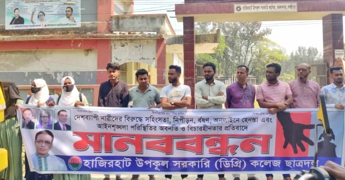 শিশু আছিয়ার ধর্ষকদের বিচারের দাবিতে কমলনগরে ছাত্রদলের মানববন্ধন