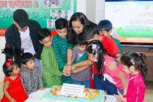 পরিশেষে মহান স্বাধীনতা ও জাতীয় দিবস উপলক্ষ্যে উপস্থিত শিশু-কিশোরদের সমন্বয়ে একটি কেক কাটার মাধ্যমে অনুষ্ঠানটির সমাপ্তি হয়।