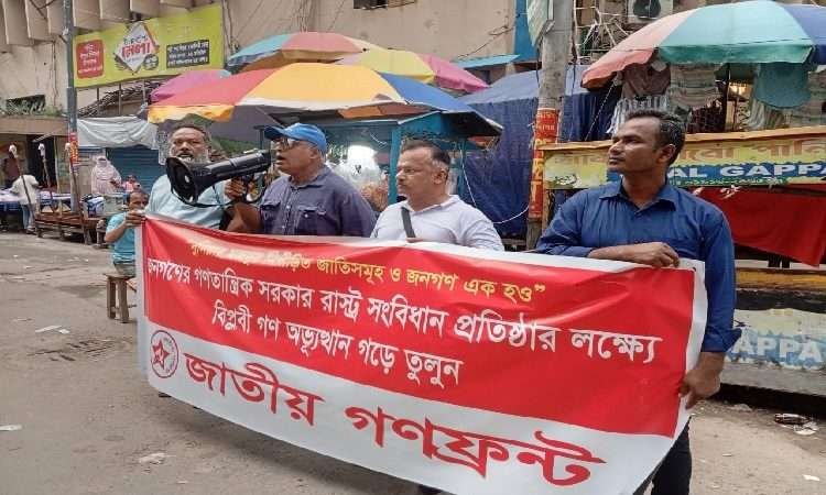 পথসভা পরিচালনা করেন জাতীয় গণ ফ্রন্টের সদস্য ও শ্রমিক নেতা কামরুজ্জামান ফিরোজ। এতে বক্তব্য রাখেন কে এম দেলোয়ার হোসেন, তৈমুর খান অপু, অনিন্দ্য আরিফ, নন্দ কুমার বাশফোরসহ সংগঠনের অন্যান্য নেতৃবৃন্দ।
