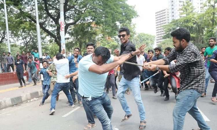 ধানমন্ডি ও কাকলি মোড়ে শিক্ষার্থীদের ওপর লাঠি ও রড দিয়ে হামলা।