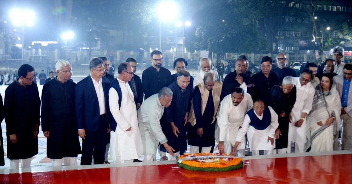 মহান শহিদ দিবস ও আন্তর্জাতিক মাতৃভাষা দিবস উপলক্ষ্যে প্রধানমন্ত্রী তারেক রহমান একুশের প্রথম প্রহরে ঢাকায় কেন্দ্রীয় শহিদ মিনারে পুষ্পস্তবক অর্পণ করে ভাষা শহিদদের প্রতি শ্রদ্ধা জানান। এসময় স্বরাষ্ট্রমন্ত্রী সালাহউদ্দিন আহমদ সহ মন্ত্রিপরিষদের সদস্যবৃন্দ উপস্থিত ছিলেন। (শনিবার, ২১ ফেব্রুয়ারি ২০২৬)
