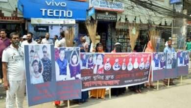 ফতুল্লায় গৃহবধূ লামিয়া আক্তার ফিজা (২১) হত্যার ঘটনায় জড়িতদের গ্রেফতার ও বিচারের দাবিতে মানববন্ধন ও ঝাড়ু মিছিল করেছেন নিহতের স্বজন…
